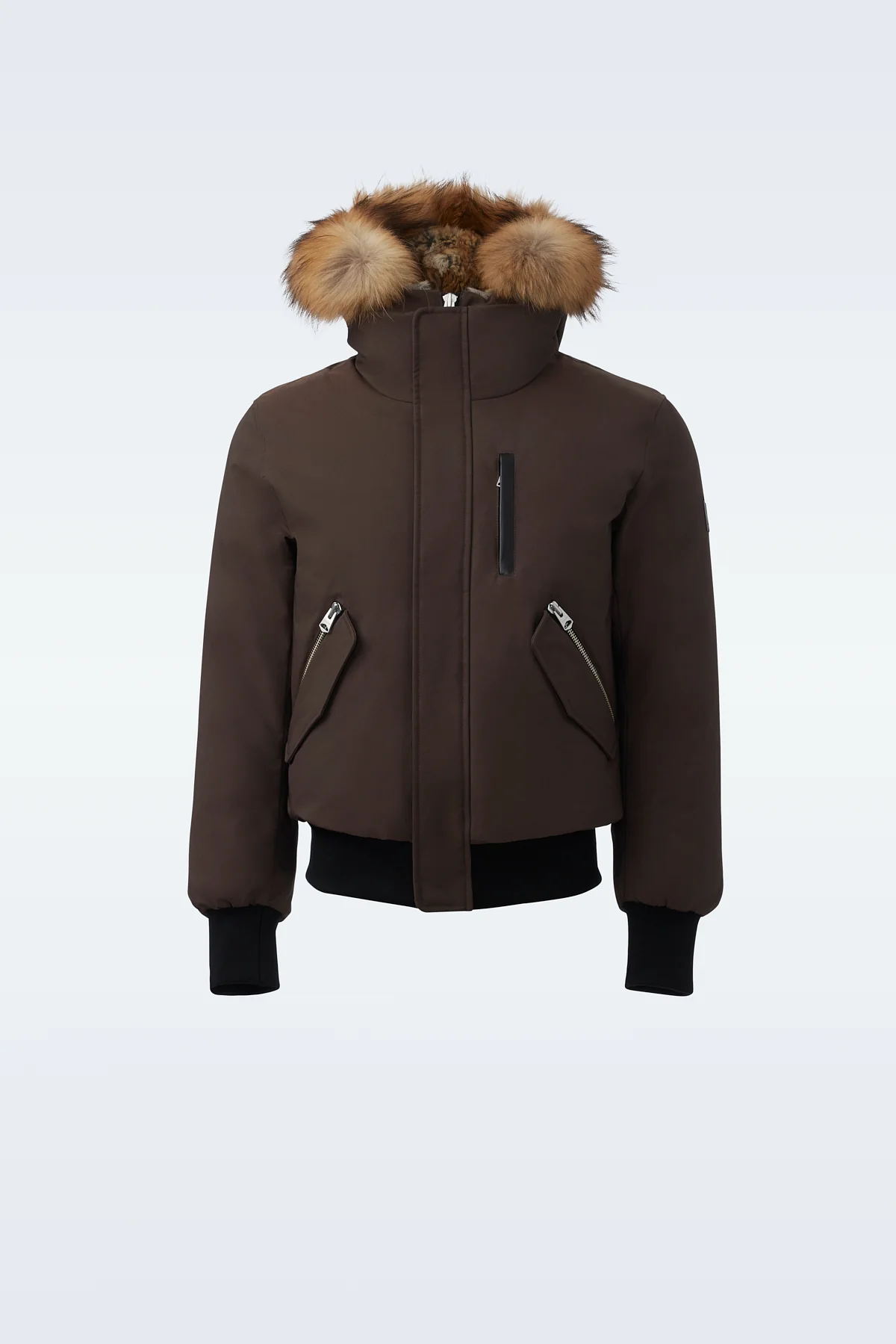 DIXON-F is a recycled down bomber jacket for men made with our proprietary bonded Nordic Tech shell. An iconic style with classic lines, it boasts a removable lustrous down hooded bib with a detachable sustainable natural fur trim. Expertly designed for warmth in subzero temperatures, the insulated pockets, rib knit trims, and hidden zip back vents ensure maximum comfort.