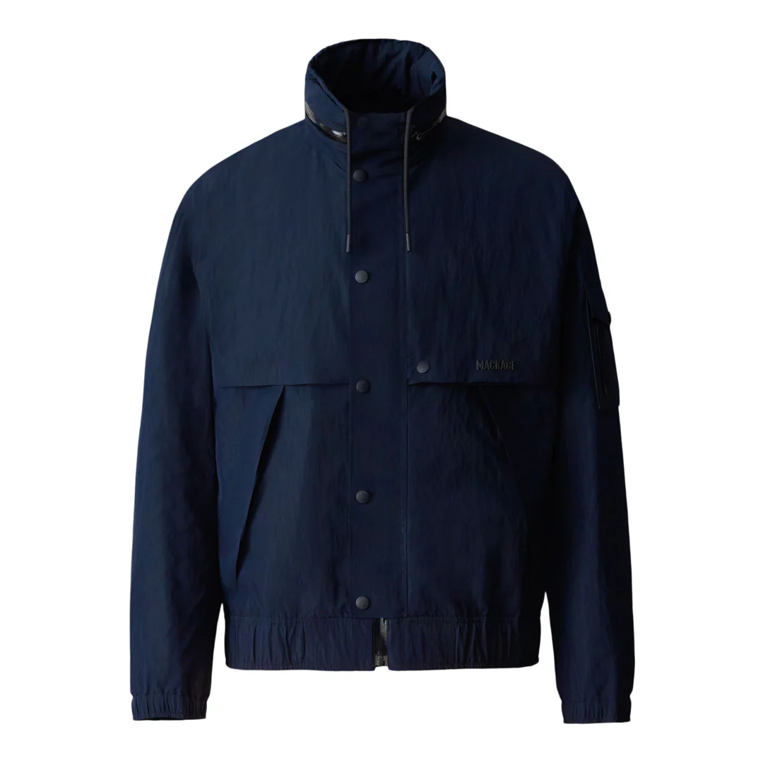 GARRETT is a ripstop shell jacket made from recycled pre-consumer yarn. Featuring seam sealed interior, water-resistant zipper at the center front and rain shedder at both the front and back for extra protection against the elements. The regular fit silhouette is defined by elasticized cuffs and hem, and a stand collar with a packable hood. Zip pockets throughout and underarm eyelets for ventilation add utilitarian appeal. A refined nod to late 80s sportswear with a functional edge for all season wear.