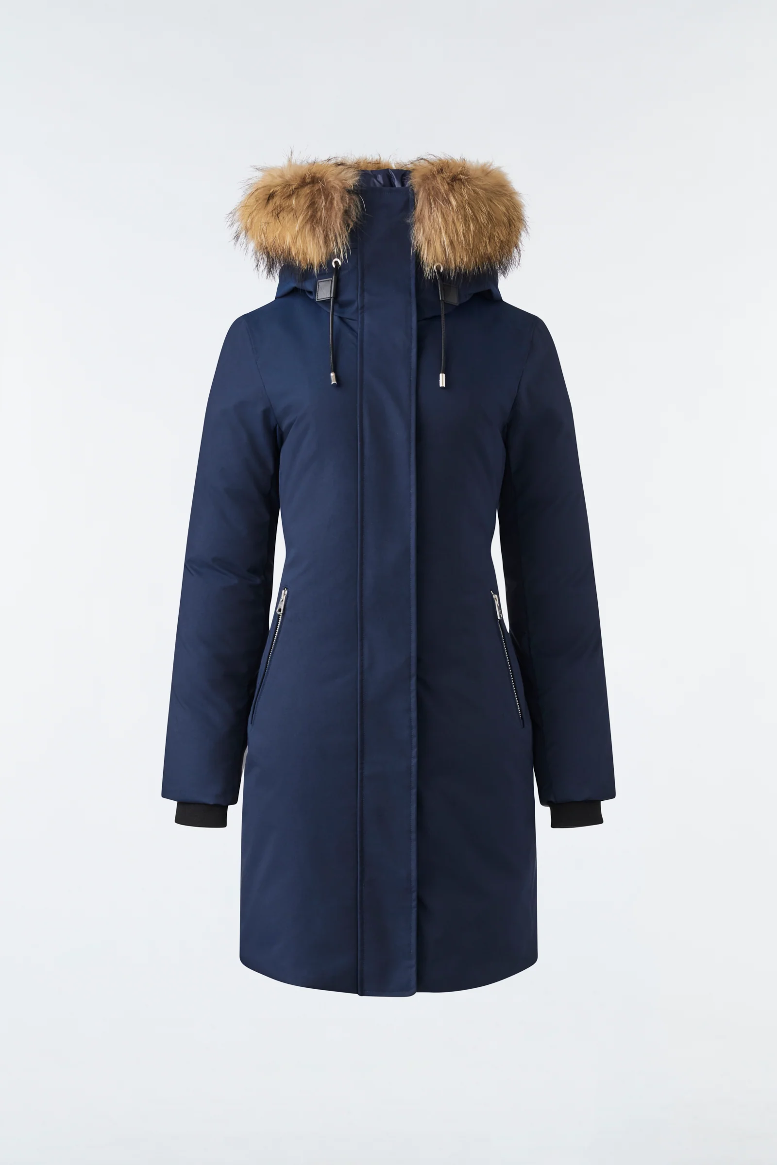 SHILOH-F is a 2-in-1 recycled down for women three-quarter with removable lustrous down bib and adjustable storm visor hood. Our proprietary Nordic Tech weave and removable natural fur trim deliver ultimate comfort in the coldest weather. The leather welt storm placket add custom warmth. Carefully tailored for fashion-forward versatility.